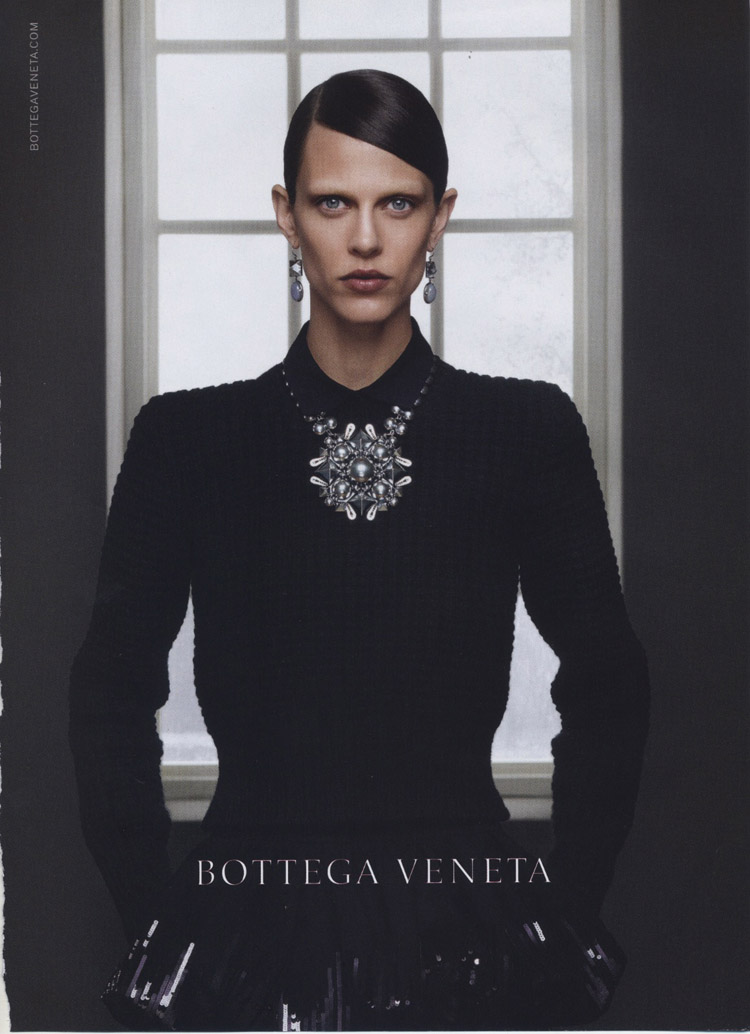 How about the woman in this Bottega Veneta ad? She’s wearing a fabulous outfit and some incredible jewelry. Why go all Ilsa She Wolf of the S.S. on us?