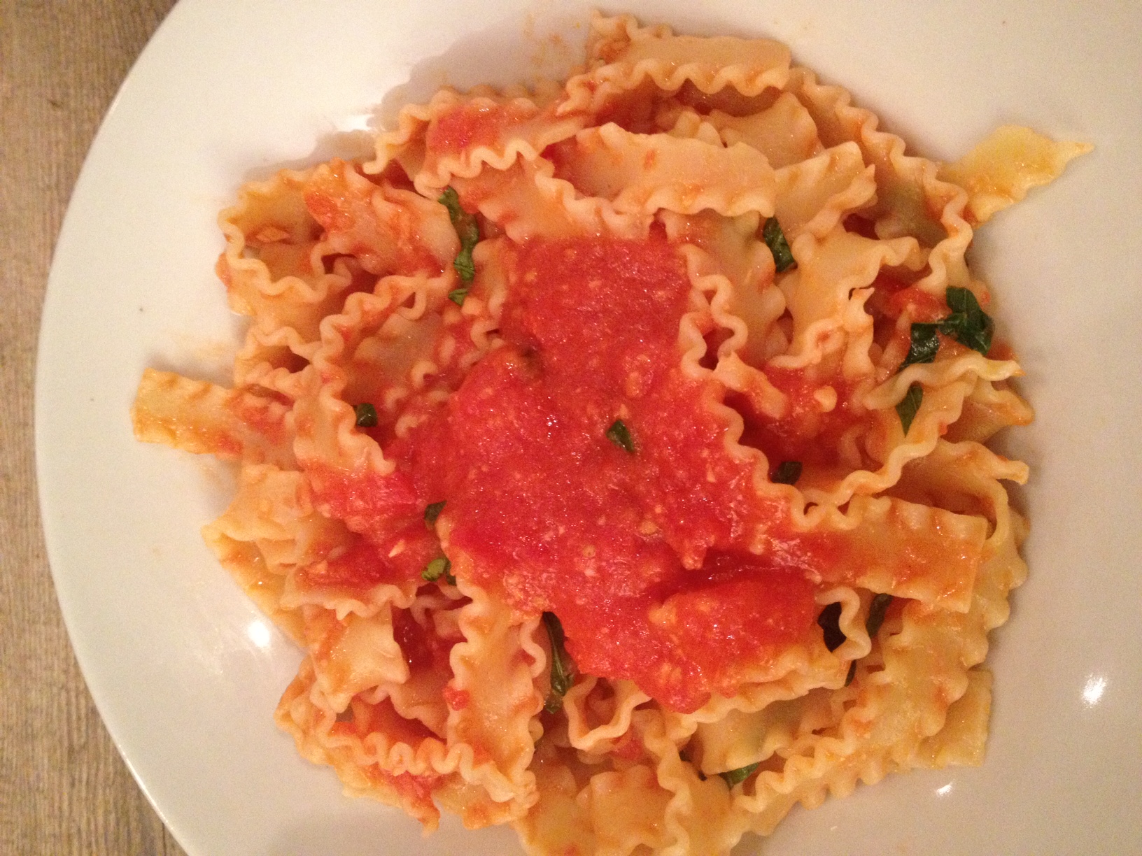 Red Sauce  My wife’s is the essence of simplicity. Brown some garlic in extra virgin olive oil. Throw in a few red peppers, a couple of bay leaves. Add San Marzano tomatoes. Cook ’em down slowly. Season with sea salt and fresh cracked pepper. Finish with immersion blender. Goes best with fresh pasta, cooked al dente. (For more yumminess, check out my wife’s kickass food blog.)